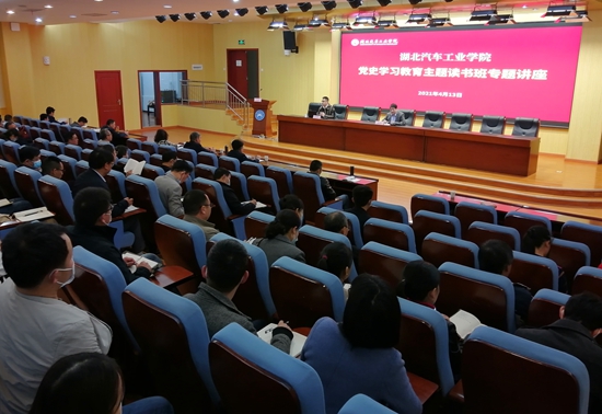 本网讯(文 杜鹏/图 杜剑彬)4月13日下午,学校党史学习教育主题读书班专题辅导讲座第三讲暨明德论坛第四十讲在逸夫报告厅开讲。十堰市委宣讲团成员、我校马克思主义学院思政课部主任刘明辉老师应邀作了“以史为鉴可知兴替---学习两个‘历史决议’”主题讲座。党委书记程红兵主持讲座,学校副处级及以上干部、党支部书记聆听了讲座。